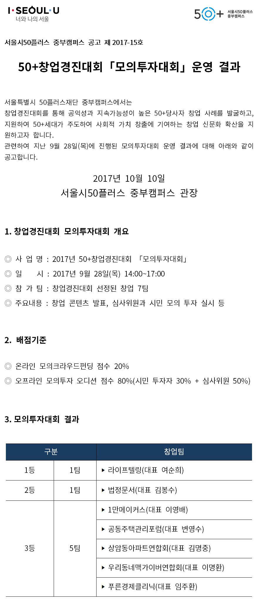 [중부50+창업경진대회] 모의투자대회 운영 결과
