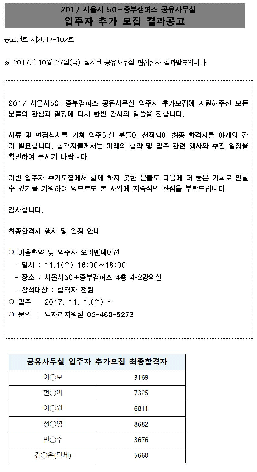 서울시50플러스 중부캠퍼스 (우04147)서울시 마포구 백범로31길 21, 서울복지타운 2층 사업자등록번호 : 232-82-00433
