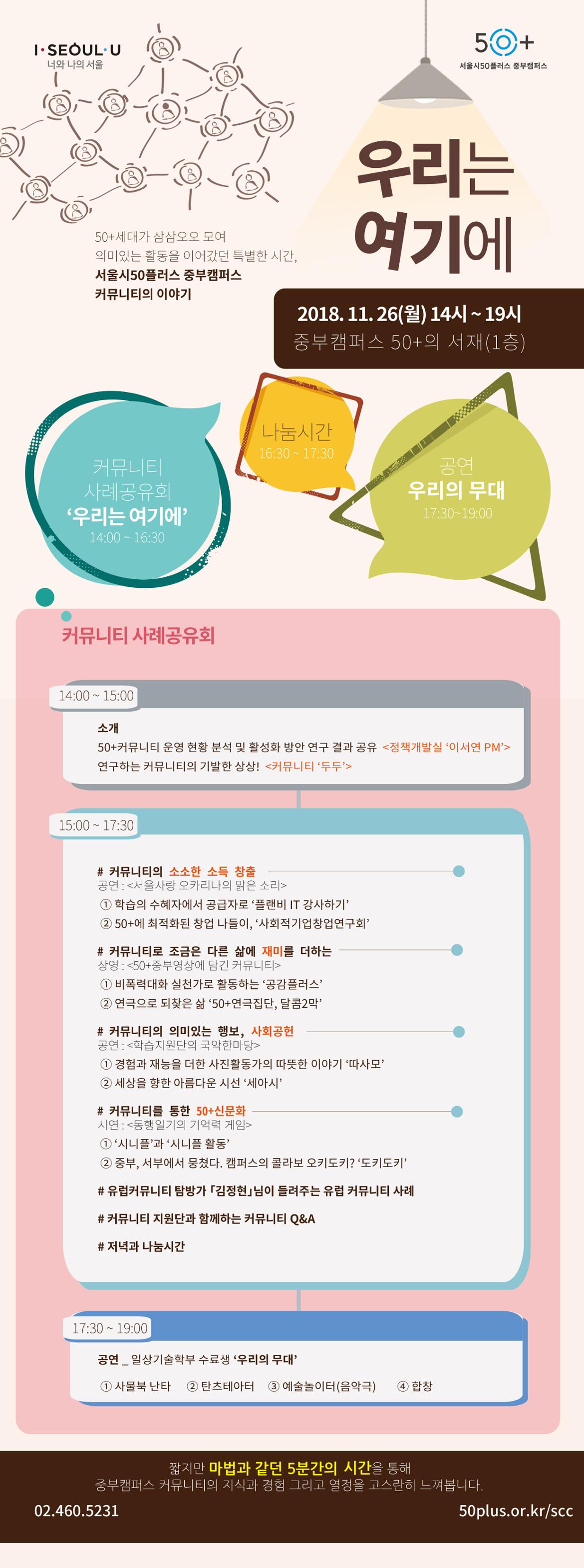 서울시50플러스 중부캠퍼스 (우04147)서울시 마포구 백범로31길 21, 서울복지타운 2층 사업자등록번호 : 232-82-00433