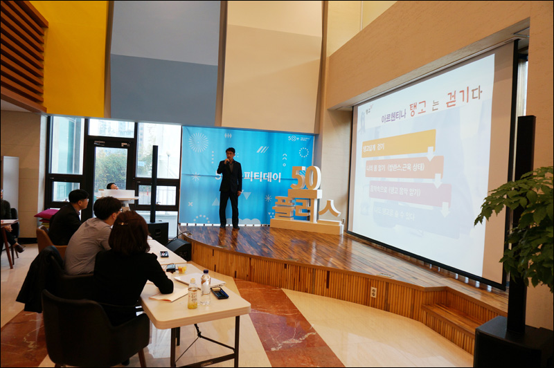 근자에 고령화 사회에 대한 말과 논의가 무성하다. 본 기자 역시 '60+'의 나이인지라 이러한 문제를 다루는 각종 매체를 관심 있게 보게 된다. 우리 사회가 고령의 세대들과의 공존에 대해 고민해 주는 것은 고맙고 또 당연한 일이다. 하지만 가끔씩은 불편해질 때가 있다. 고령의 세대를 마치 정신적 성장을 멈춘 고집불통의 '꼰대'로 간주하거나, 아니면 사회적 부담감을 계량화 하여 마치 공동체 발전의 걸림돌일 뿐인 잉여적 존재로 바라보는 듯한 시각을 대할 때 그렇다. 그것은 외형적 젊음에 대한 무조건적인 예찬만큼 왜곡된 것이다. 인간은 태어나면서 나이를 먹어간다.  '50+'는 '50-'의 퇴적물이거나 '50-'와 대립되는 비교열등의 존재가 아니라 총체적인 생의 연장선에 있는, 동일하고 동시에 독립된 존재이다. 생의 어느 지점을 지나건 자신에게 주어진 삶에 정직하게 대면하기 위해 열정적으로 노력하는 모습은 나이에 상관없이 찬란하다. 젊음과 늙음을 가르는 유일한 기준이자 가치는 오직 열정 뿐이다. '50+ 피티데이'에 참가한 예비강사들이 보여준 열정이 바로 그것이었다.