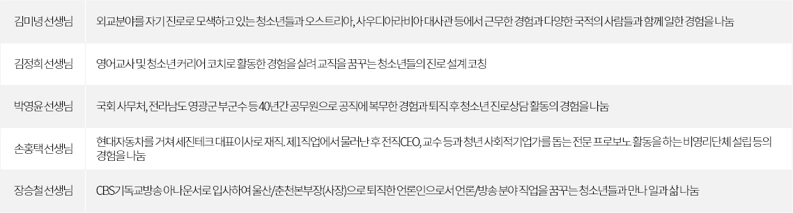 청소년들은 진로사람책을 통해 직업을 정보가 아닌 삶으로 만납니다.