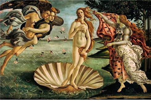 보티첼리의 비너스의 탄생: 그리스 조각상의 자세를 취하고 있다. (1484)