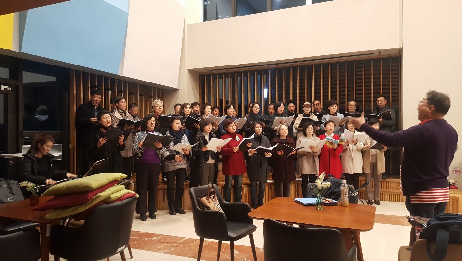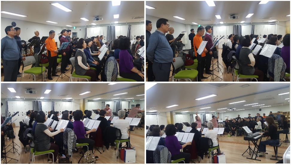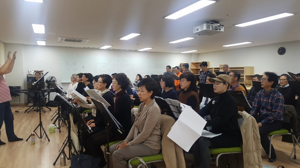 합창교실 2학기 마지막 수업이 진행되고 있습니다. 다음 주 월요일인 11월 26일 발표회를 앞두고 열기가 대단하네요. 오페라 나부코 중 ‘히브리 노예들의 합창’과 ‘음악의 선물’ ‘별’ ‘경복궁 타령’ ‘남촌’을 선보일 예정이랍니다.