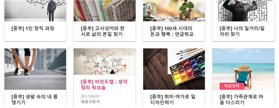 서울시50플러스재단의 중부캠퍼스 홈페이지에 들어가시면 시니어분들을 위한 강좌들이 다양하게 개설되어 있어요!