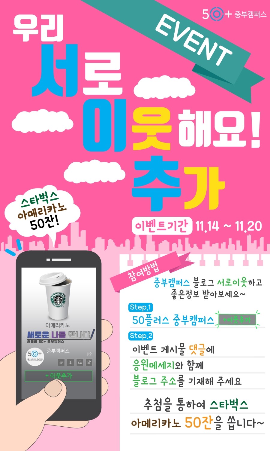 50플러스재단 중부캠퍼스 와 서로이웃 하고 좋은정보받고 선물도 받자!