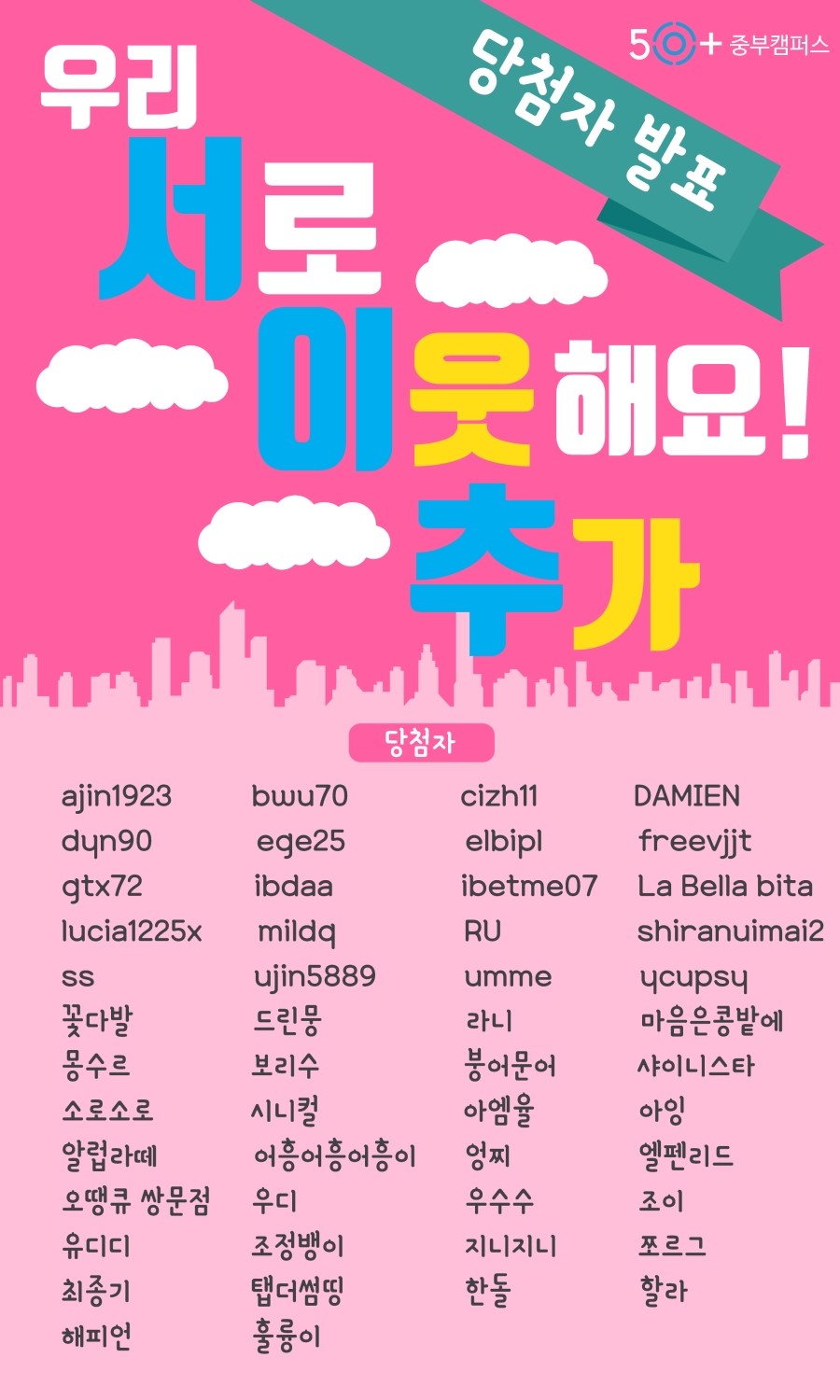 당첨자분들은 네이버 쪽지를 통해 안내해 드리겠습니다.