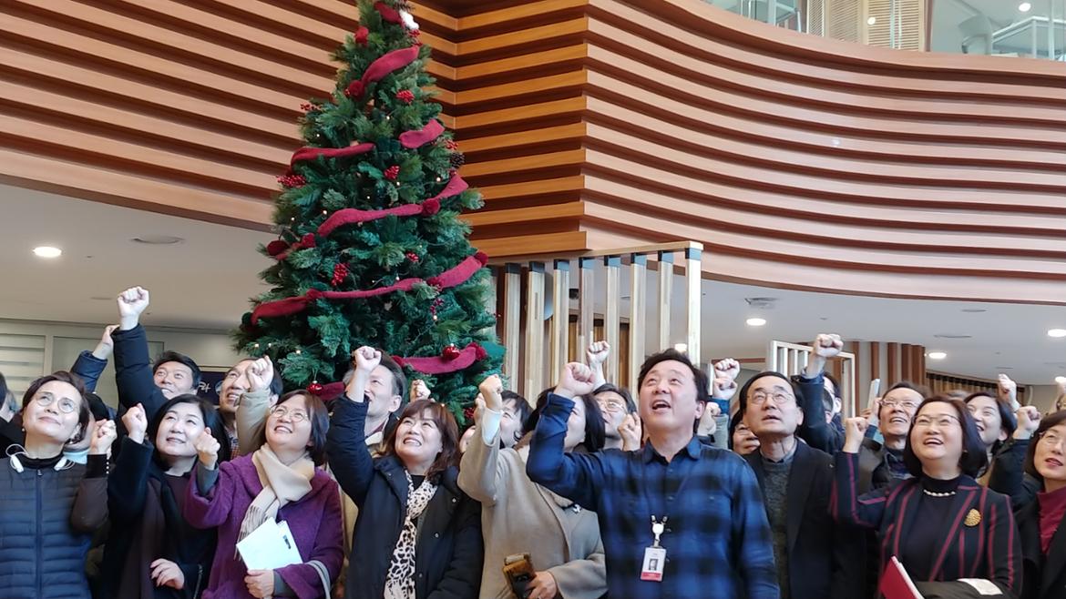 집행부는 ‘다사다난과 위기극복’을 2018 활동 리뷰 키워드로 삼으며, 케익과 촛불로 서로 격려를 나눈다. 2018년 컨설턴트 활동을 되돌아보는 영상에 곁들어진 이종문 매니저의 소금 연주는 유종의 미를 고조시킨다. 67명의 컨설턴트의 재능과 발전 가능성의 확인이 일자리지원실 매니저로써 가장 큰 보람이었다는 말을 전한다. 김정아 PM의 고백과 아쉬움, 가능성을 열어주심에 진심으로 감사하다는 관장님의 멘트를 끝으로 50+컨설턴트 전체모임을 마감한다.