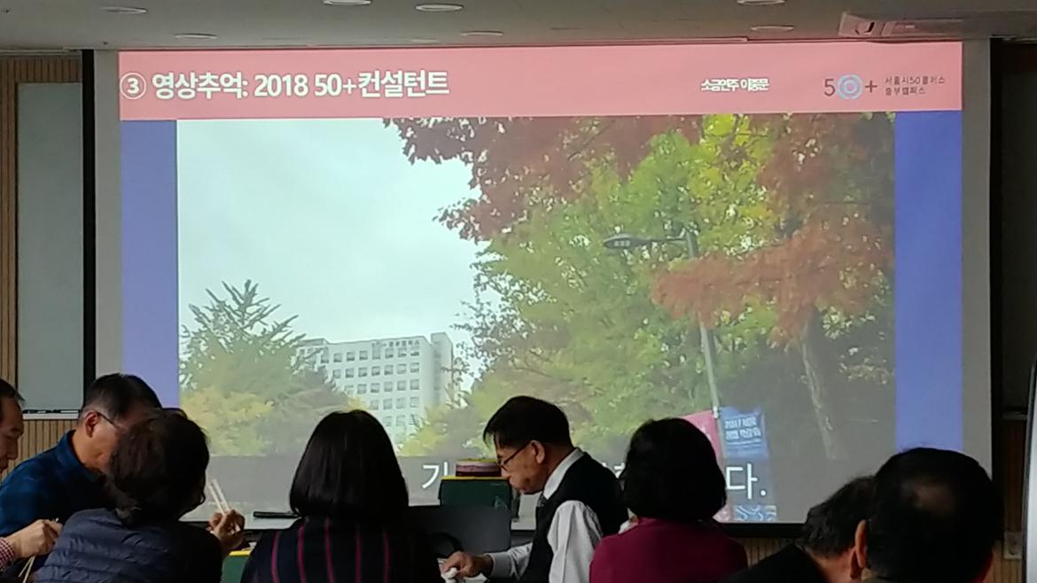 먼저 서대문50플러스센터에서 활동한 팀의 발표를 선두로 약 2시간 동안 진행되었다. 올해 처음 활동한 관계로(서대문50플러스센터는 2018년 7월에 개관한 신규기관) 상담 프로세스가 아직은 미비하다고 한다. 내담자 대다수가 1회 상담에 그치고, 일자리에 관심이 집중 되어 있다. 직업상담소로 착각하여 오시는 경우도 있었다고 한다.