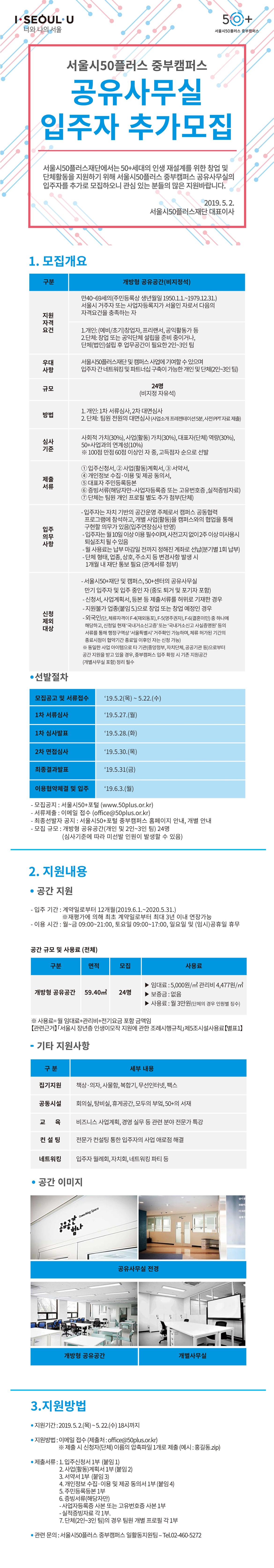 서울시50플러스 중부캠퍼스 (우04147)서울시 마포구 백범로31길 21, 서울복지타운 2층 사업자등록번호 : 232-82-00433