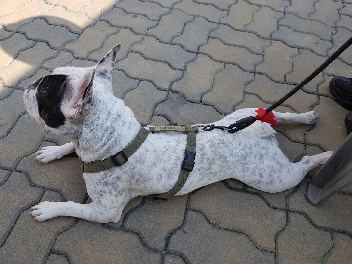 <프렌치 불독 단추(2살, 암컷)는 이 모습이 제일 편하게 쉬는 자세라고 한다.>