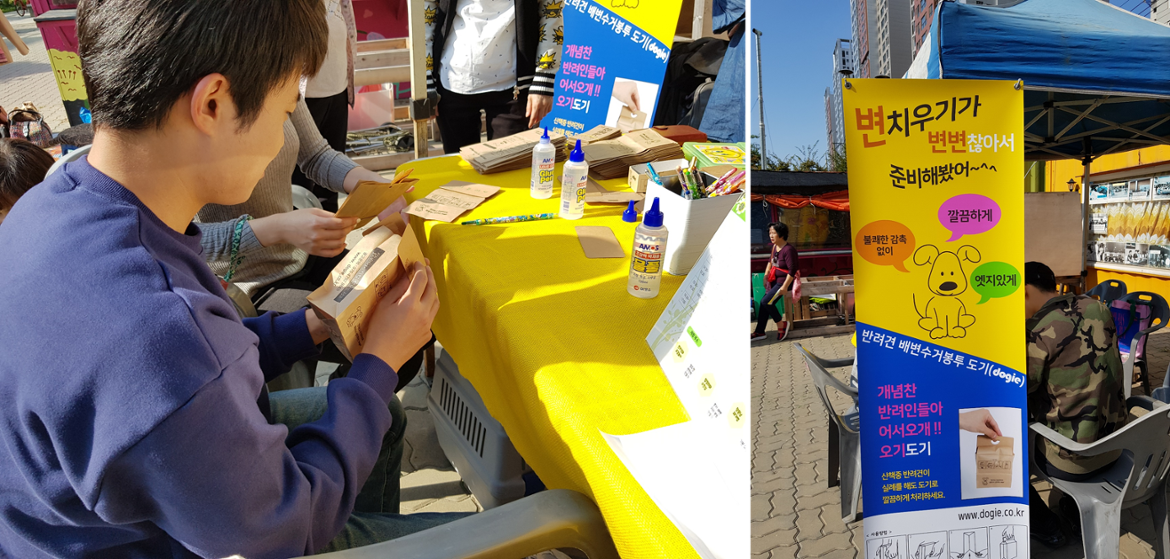 “공원이나 거리에 개똥이 널려져 있는 것을 보고 반려견 배변봉투를 만들어야겠다고 생각했어요.