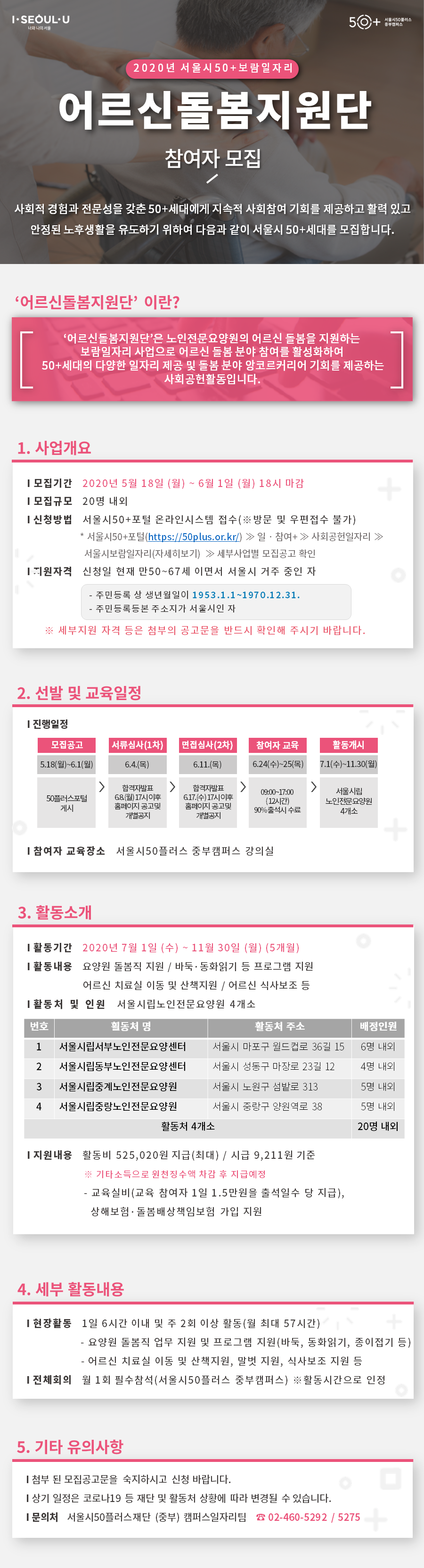 [50+보람일자리] 『어르신돌봄지원단』 참여자 모집공고
