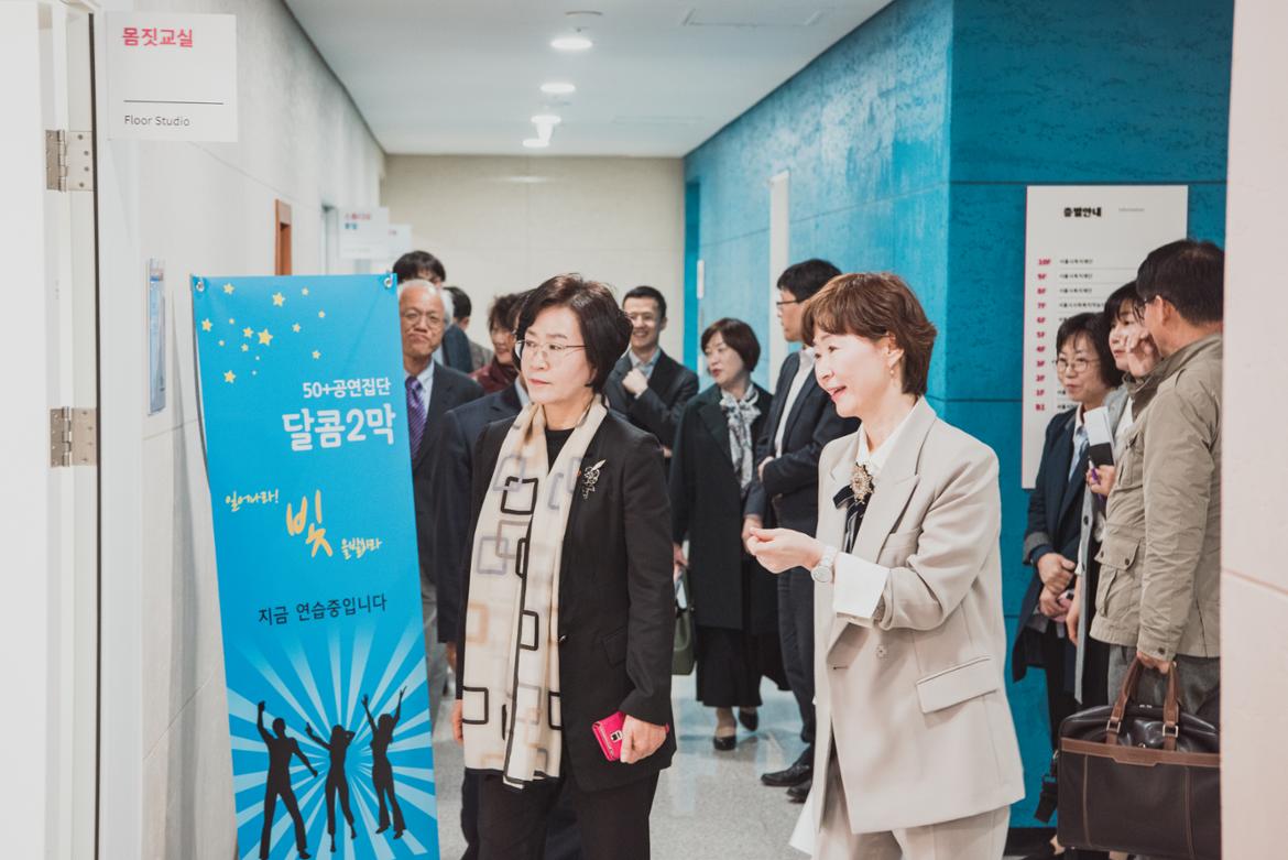 서울시50플러스 중부캠퍼스 공간을 둘러보고 있는 김상희 부위원장과 위원들