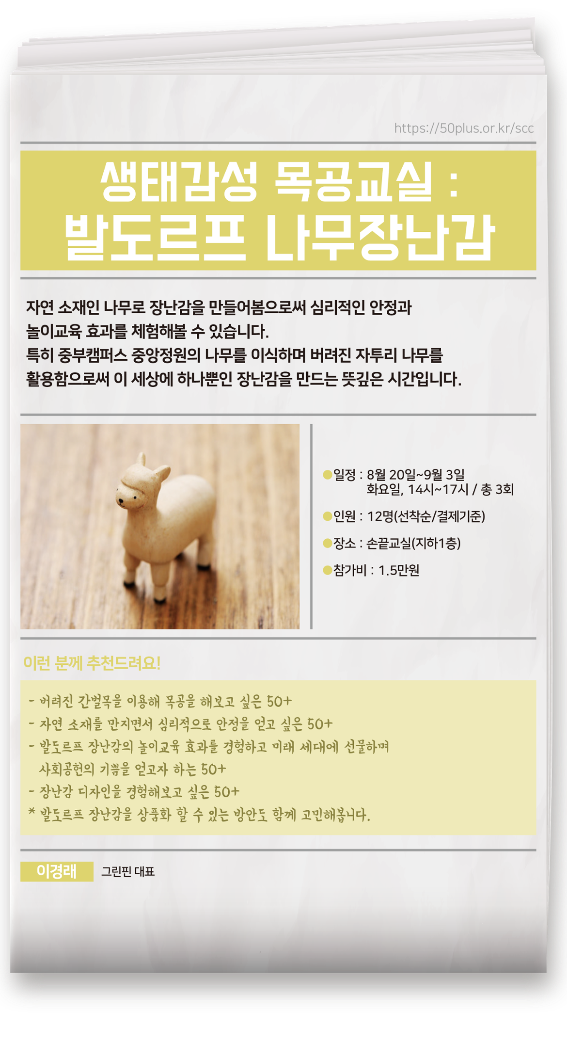 (3 회차) 2019.09.03(14:00 ~ 17:00) 손끝교실(외부대관 불가) 이경래 활용 패키지 만들기