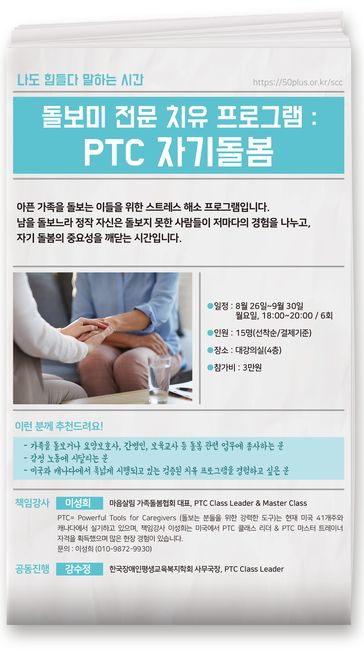 돌보미 전문 치유 프로그램: PTC 자기돌봄