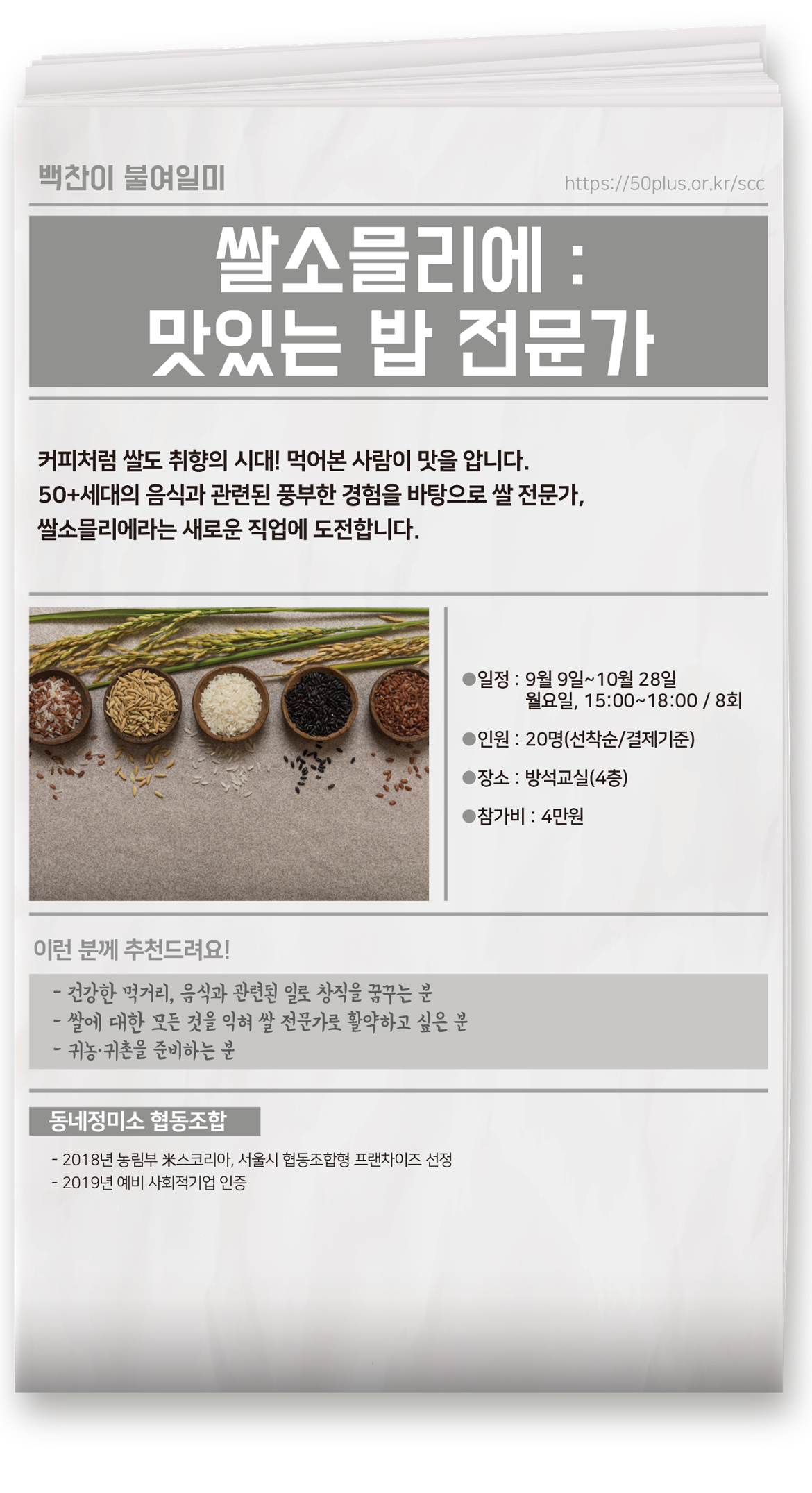 (2 회차) 2019.09.16(15:00 ~ 18:00) 방석교실 동네정미소 협동조합 <쌀소믈리에란?>