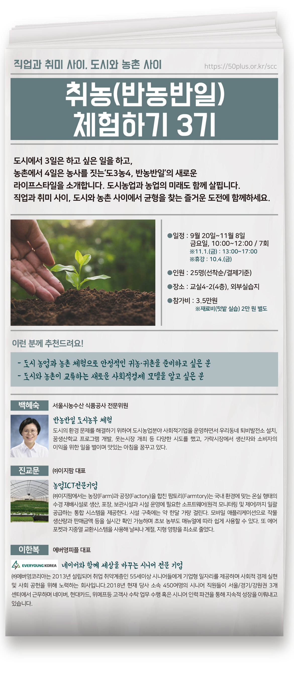 [중부]농촌체험: 50+와 농촌자원이 만나다