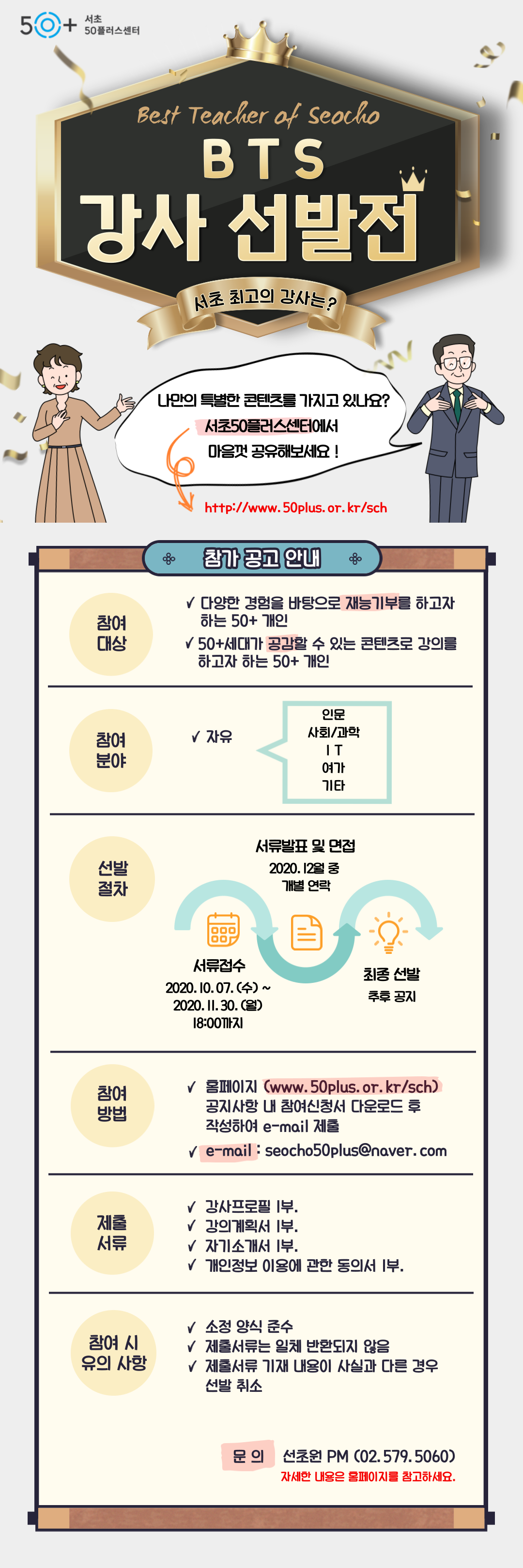 서초50플러스센터에서 제 1회 BTS 강사 선발전을 개최합니다!