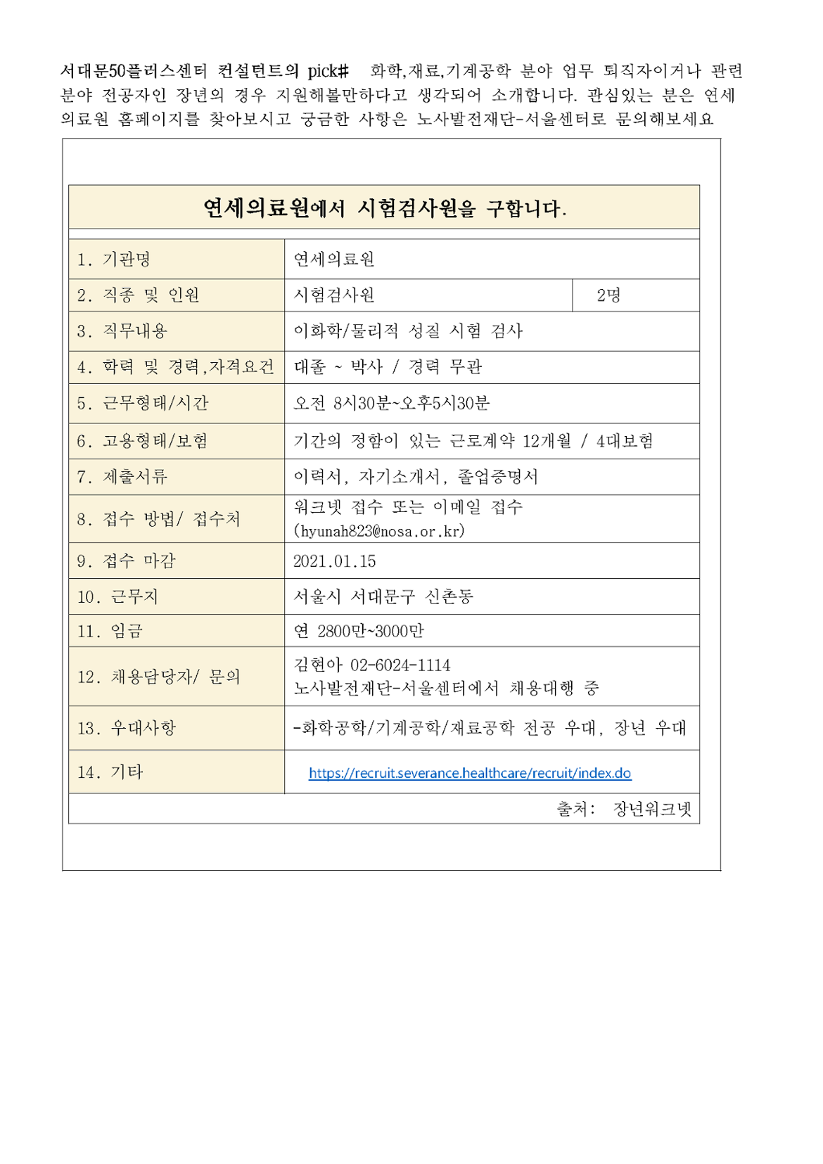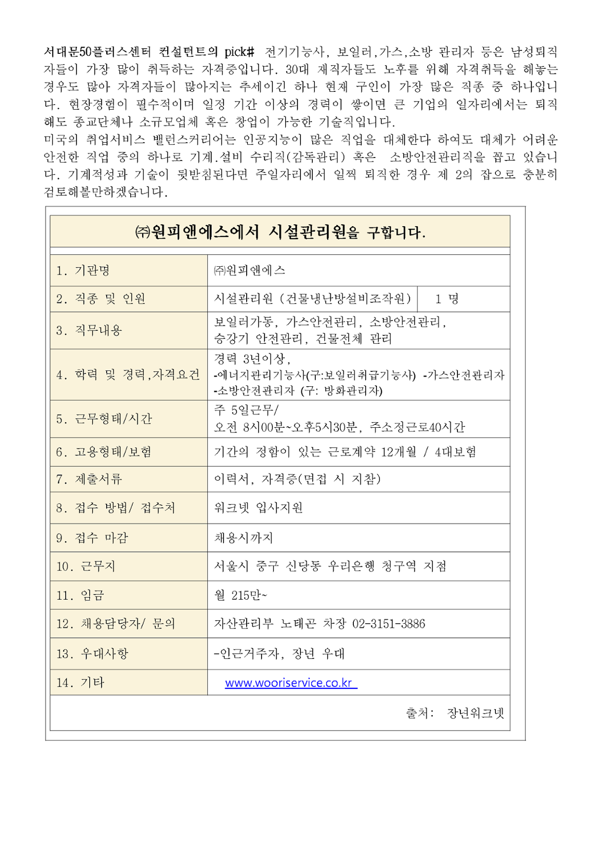 50+ 컨설턴트가 고른 주간 일자리 정보_10월 셋째 주
