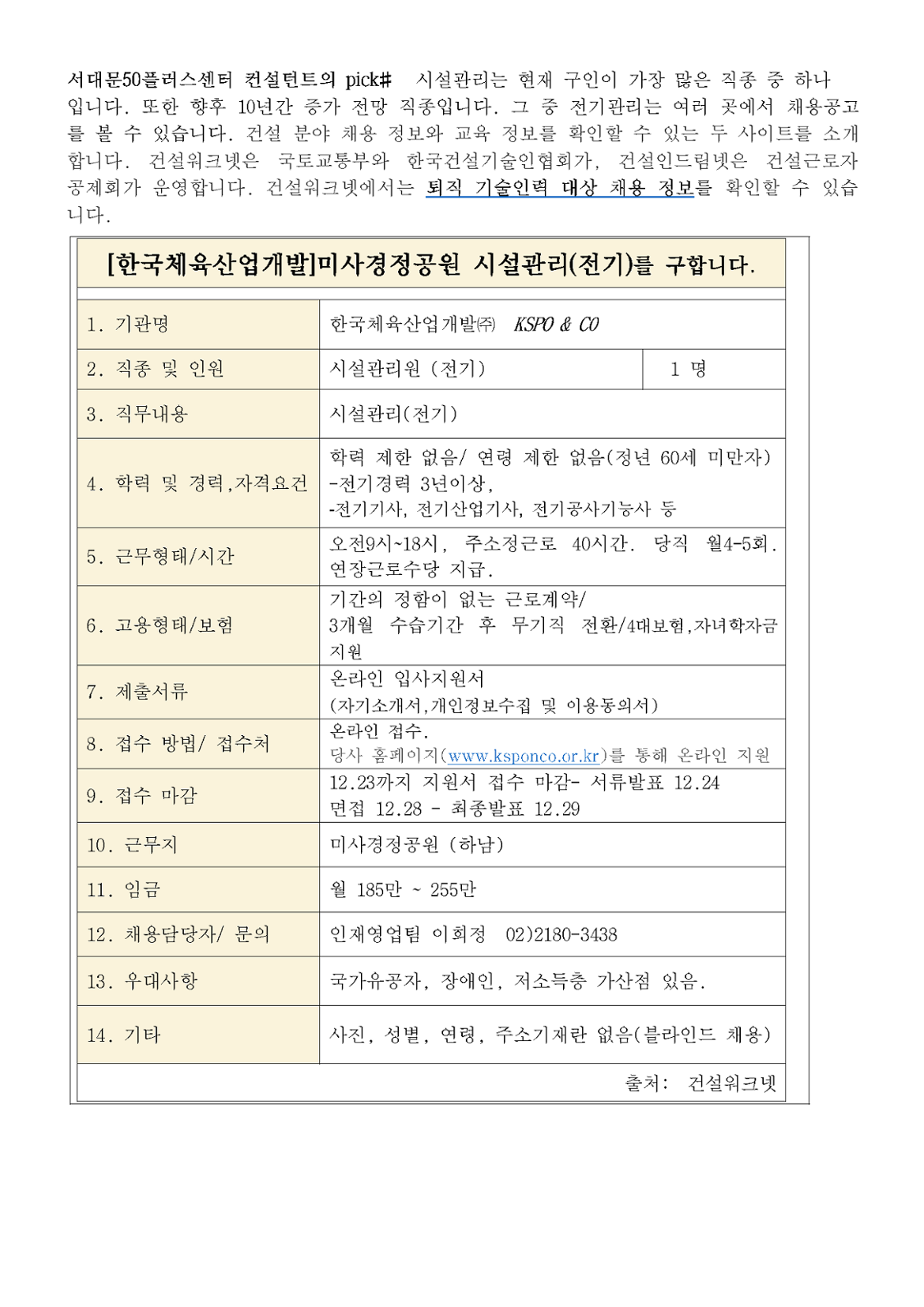 50+ 컨설턴트가 고른 주간 일자리 정보_11월 셋째 주