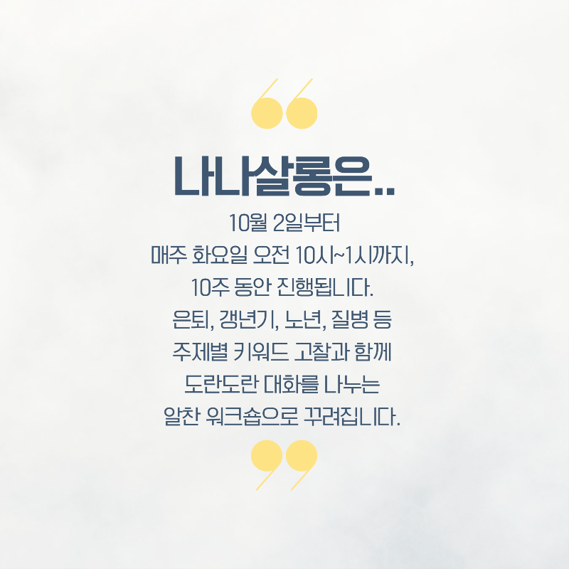 인문학으로 만나는 '나'답게 '나이'드는 법, <나나살롱>