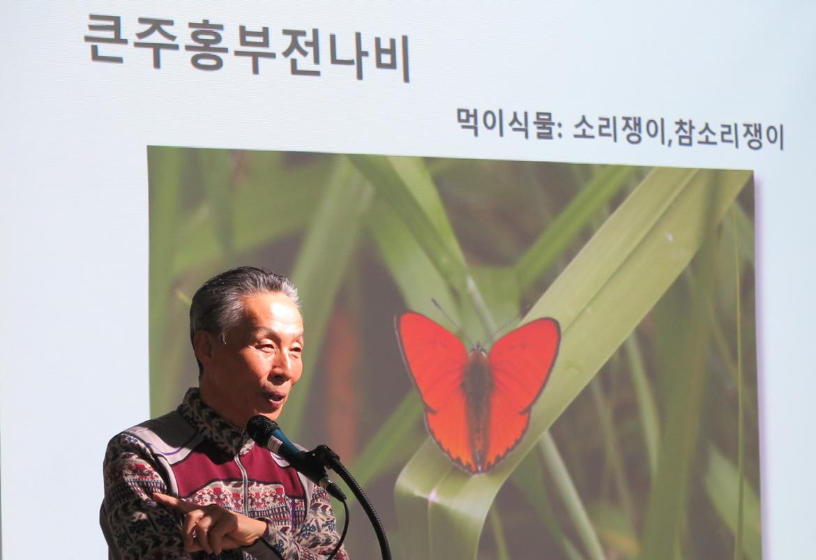 그 밖에도 몸 끝부분을 쉼 없이 비벼 꼬리를 머리로 오인시켜 외부 공격으로부터 자신을 보호하는 암먹부전나비, 20일 남짓 사는 다른 나비에 비해 감나무에 까치밥으로 남겨 둔 열매 속 진액을 빨아먹으며 250여 일이나 월동하는 청띠신선나비, 도토리열매에 구멍을 뚫어 산란하고 가지를 잘라 떨어뜨려 알을 보호하는 도토리바구미 등도 신기했다. 강의 부제처럼 새들과 곤충 모두 우리 곁에 함께 있는 '또 하나의 이웃'이었다.