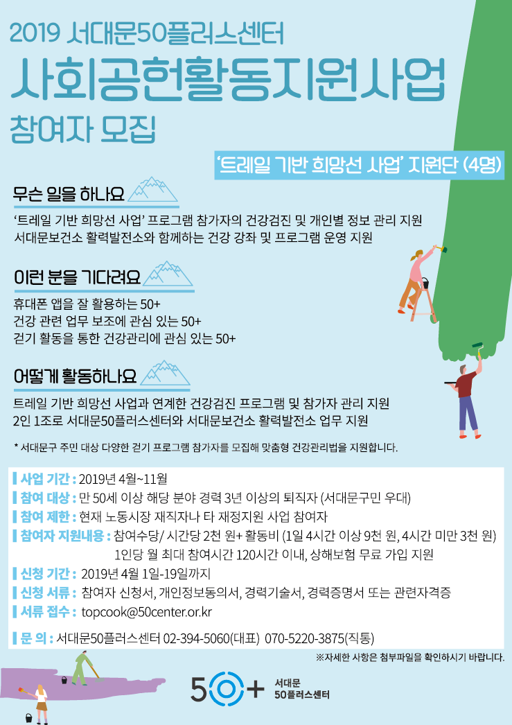 신청 접수 후, 2019년 5월 3일(금) 사회공헌활동가 최종합격자를 발표합니다.