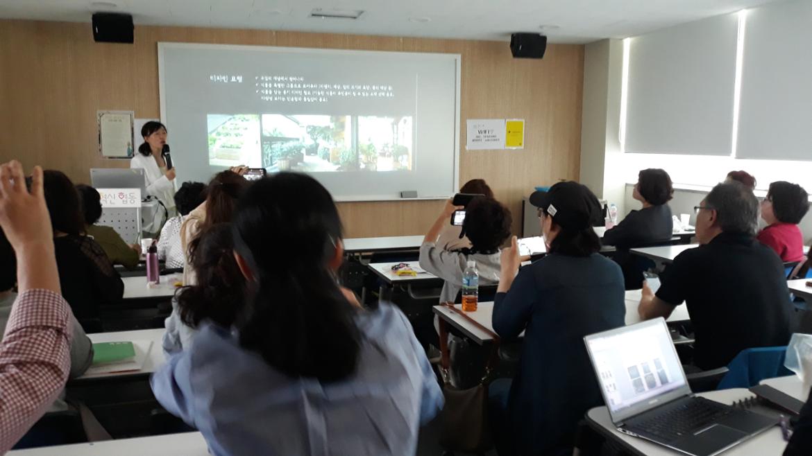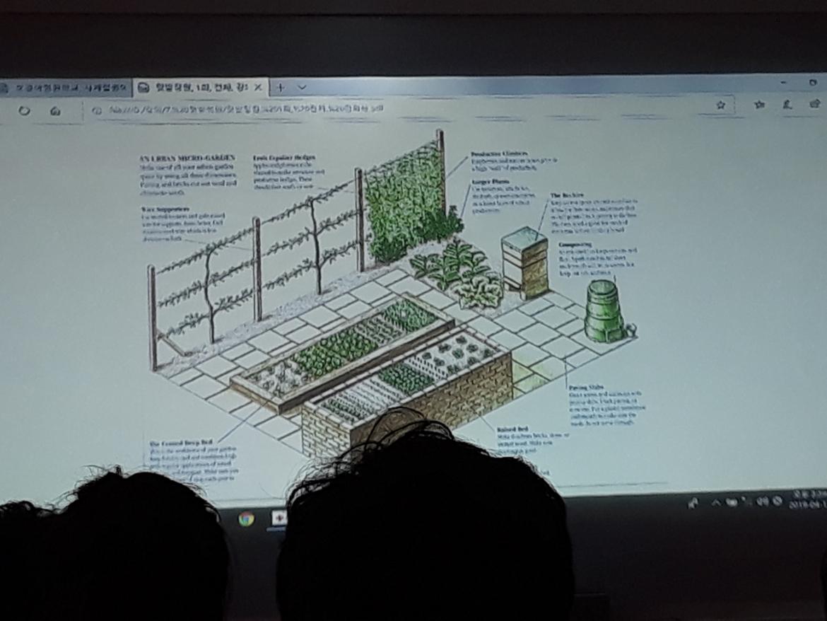 이론 교육을 맡은 오경아 님은 ‘정원의 역사, 텃밭 정원의 이해, 사계절 정원 관리, 도시와 정원, 허브 정원 디자인’ 등을 항상 풍부한 자료 사진을 보여주며 설명한다.