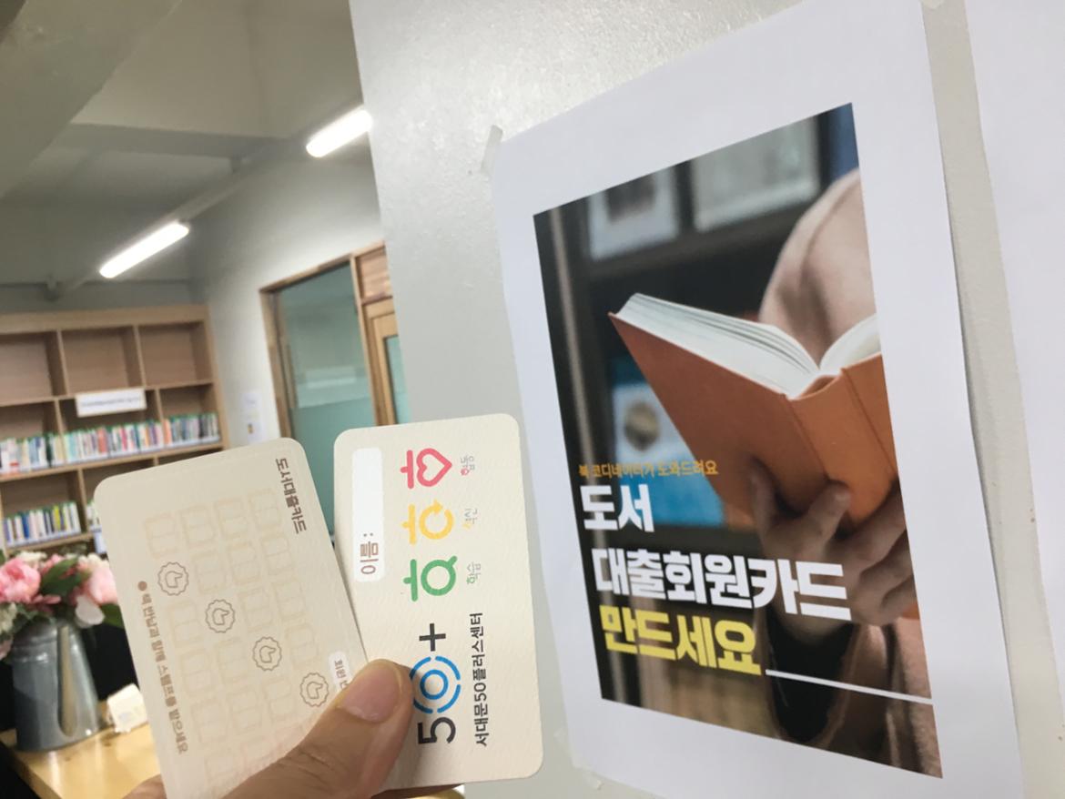 이제 서대문50플러스센터 홈페이지 회원이라면 북 코디네이터를 통해 도서 대출 카드를 발급 받아 1회 1권 2주간 책을 빌릴 수 있습니다.