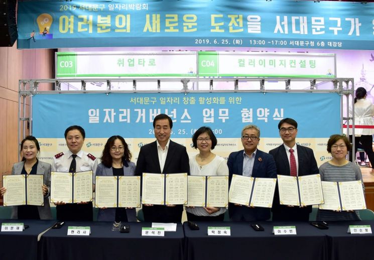 ".....이날 박람회에서는 지역 내 일자리 창출 활성화를 위해 서대문여성인력개발센터, 서대문지역자활센터, 서대문50플러스센터, 서울노숙인일자리지원센터 등 ‘서대문구일자리거버넌스’에 참여하는 12개 기관과 서대문구가 ‘유기적 네트워크 구축 및 일자리 발굴 협업’을 위한 업무 협약을 맺었다....."
