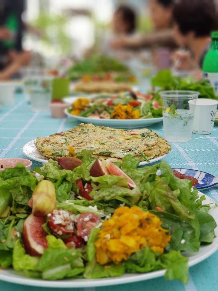 집안에서 쉽게 키울 수 있는 여러가지 관상 식물 심고 가꾸기도 배우고, 직접 기른 작물들로 팜 파티도 열었습니다! 옥상 텃밭에서 잘 자라준 상추와 배추, 쪽파로 파전과 샐러드 같은 음식을 만들어 다함께 맛있게 먹었습니다.