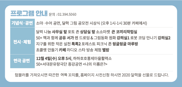 찬 바람이 불 때, 서대문 50플러스와 함께 -12월 7일, 서대문50플러스센터, 2019 활동 공유회 4th 파티 잇-다 -연극과 몸춤 ·수어 공연과 다양한 전시·체험 활동 열려