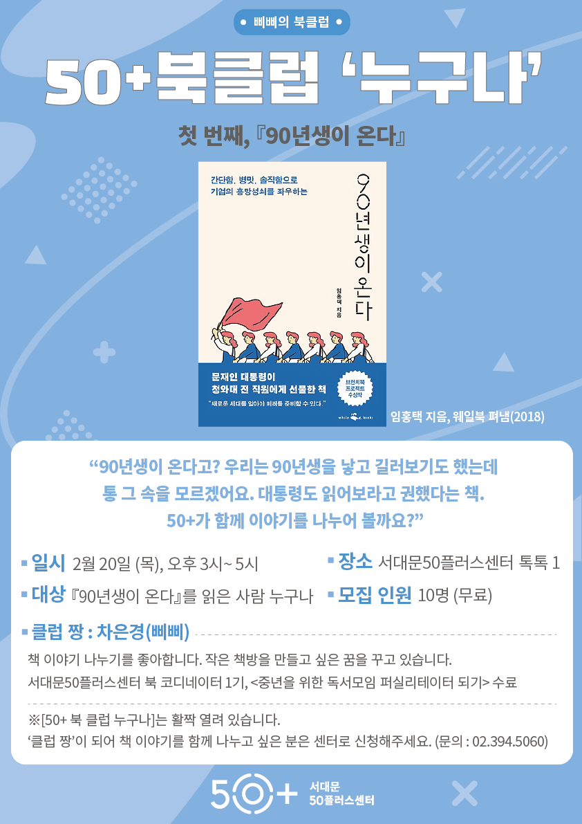 * [50+ 북 클럽 누구나]는 열려 있습니다.