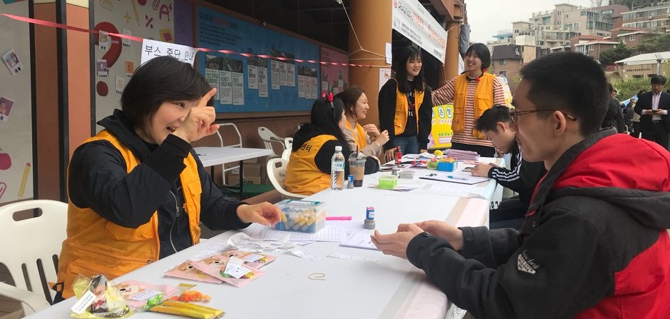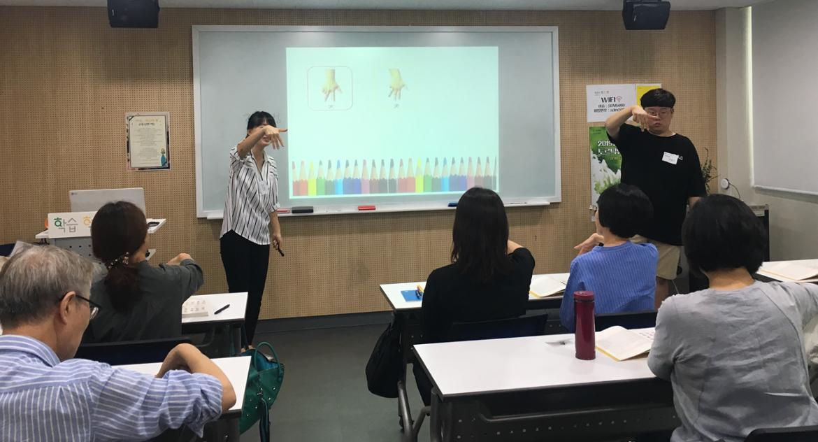 2019년 4월 19일 제23회 서대문구 장애인의 날 행사에서 열린 서대문50+수어 학교(기초과정) 학습자들의 자원봉사와 현장 체험 교육.