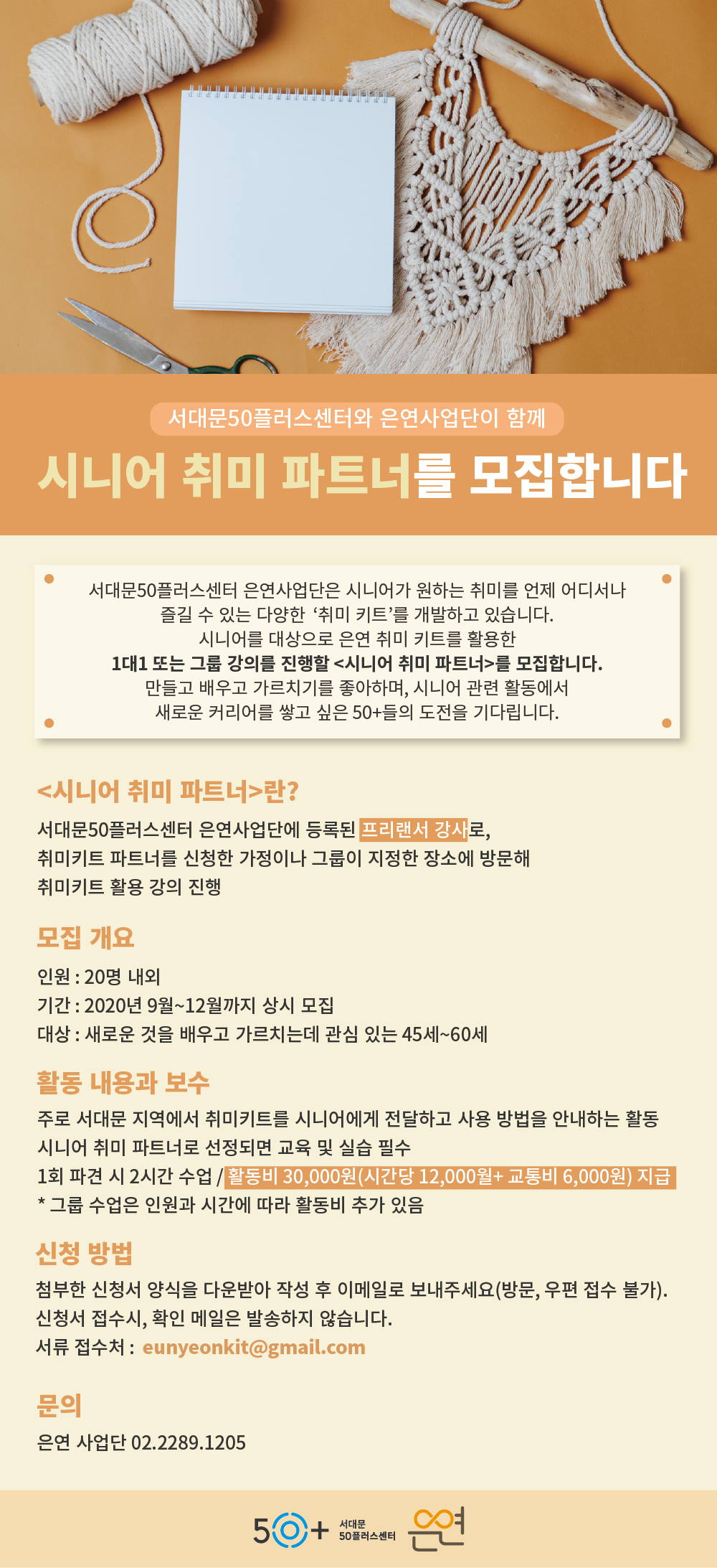 *<시니어 취미파트너>에서 대해서 궁금한 점은 Q&A로  첨부했습니다. 참고 하시고 더 알고 싶은  점은 은연사업단으로 문의해주세요.
