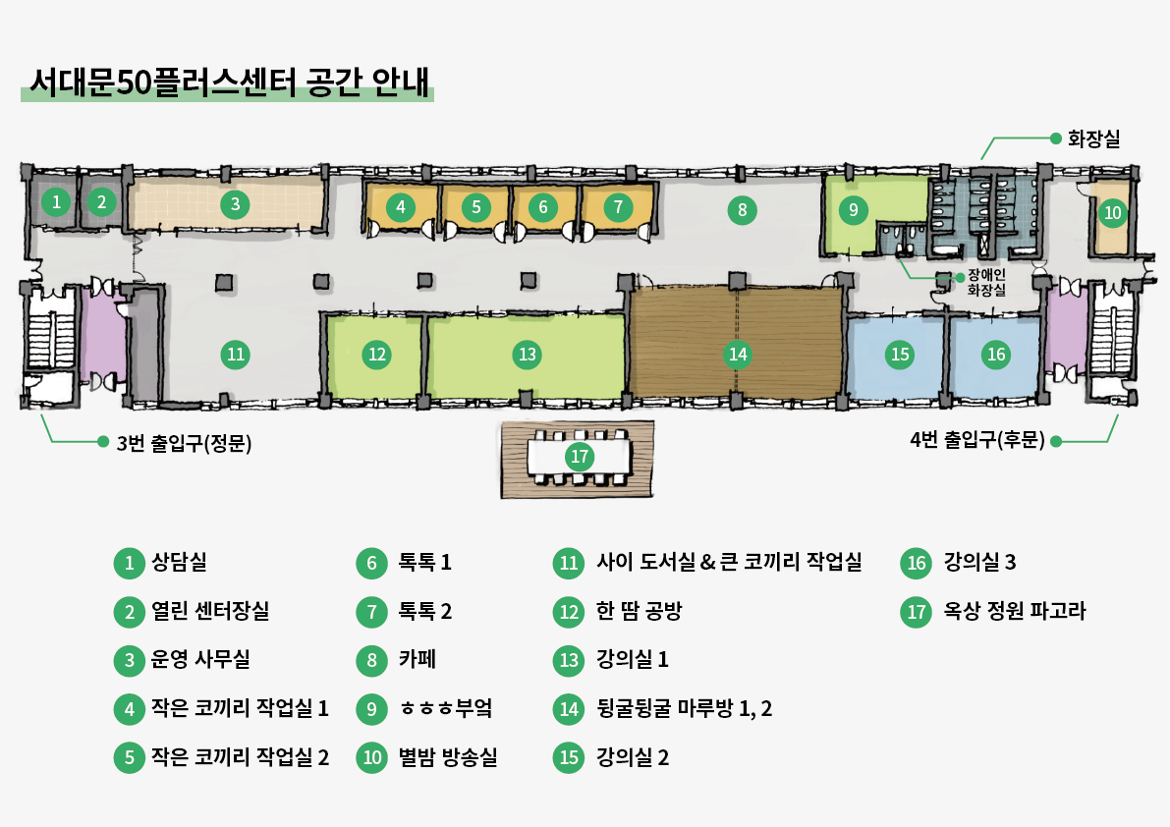 사이 도서실, 코워킹 입주자 및 보람일자리사업 사무 공간, 자유석 등 |