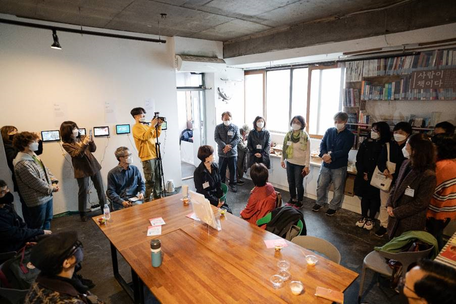 전시공간은 비좁았지만, 대부분이 수강생인 관람객들의 표정은 뿌듯함이 넘쳤다. 온라인 강의라는 제약 속에서 거칠지만 실력 발휘 한 내 작품을 만들었고 전시까지 했다는 생각에 서로를 격려하고 응원했다. 브이로그(비디오+블로그 합성어로, 스마트폰 영상으로 만든 일종의 동영상 다이어리) 과정을 수강한 임정아 씨는 “온라인 강의로 진행된 터라 여러모로 어려움이 많았는데, 이렇게 작품을 전시하고 보니 제 스스로가 대견해지네요”라고 말했다. 브이로그 과정은 편집 프로그램 핸들링이 관건인데, 비대면수업으로 진행하다 보니 배우는 데 있어 지장이 많았다고 한다.