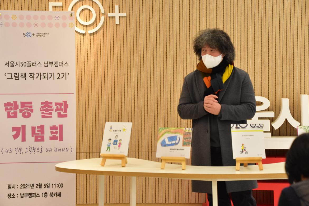 그림책 작가되기 출판기념회는 남부 교육상담팀 김진이PM과 강사 김중석 작가의 인사말로 시작되었습니다.