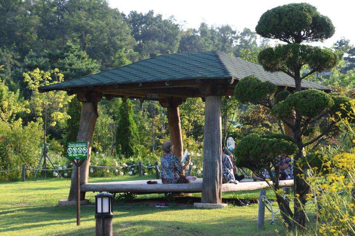 수생식물원과 습지식물원 그리고 참여정원을 지나노라면 동화 속에나 등장할 것 같은 예쁘장한 원두막이 여럿 보인다. 숲속의 원두막은 관람객의 지친 걸음을 잠시 쉬어갈 수 있게 해주는 고마운 공간이다. 이곳에 자리를 잡고 앉아 부채질을 하며 더위를 식히는 사람들의 얼굴에선 편안함과 여유로움을 찾아볼 수 있다. 잠시 쉬어갈 수 있도록 만들어진 휴식공간은 원두막 이외에도 관람로 주변에 많이 마련되어 있다. 예쁜 돌을 배치해 만든 공간도 있고, 벤치도 설치되어 있어 관람객이 불편하지 않도록 노력한 흔적을 쉽게 찾아볼 수 있다.