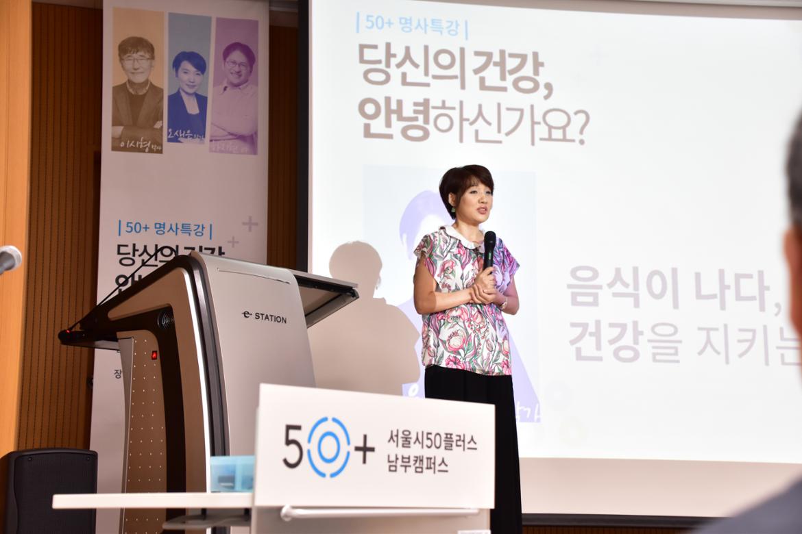 한껏 비가 쏟아져 내린 후 맑게 갠 오후, 서울시 50플러스 남부캠퍼스에서 진행된 50+명사특강, 그 두 번째 시간! 베스트셀러 [음식이 나다]의 저자 오새은 작가님의 강의를 듣기 위해 수강생들이 삼삼오오 4층 꿈꾸는 강당으로 모이기 시작하였습니다.