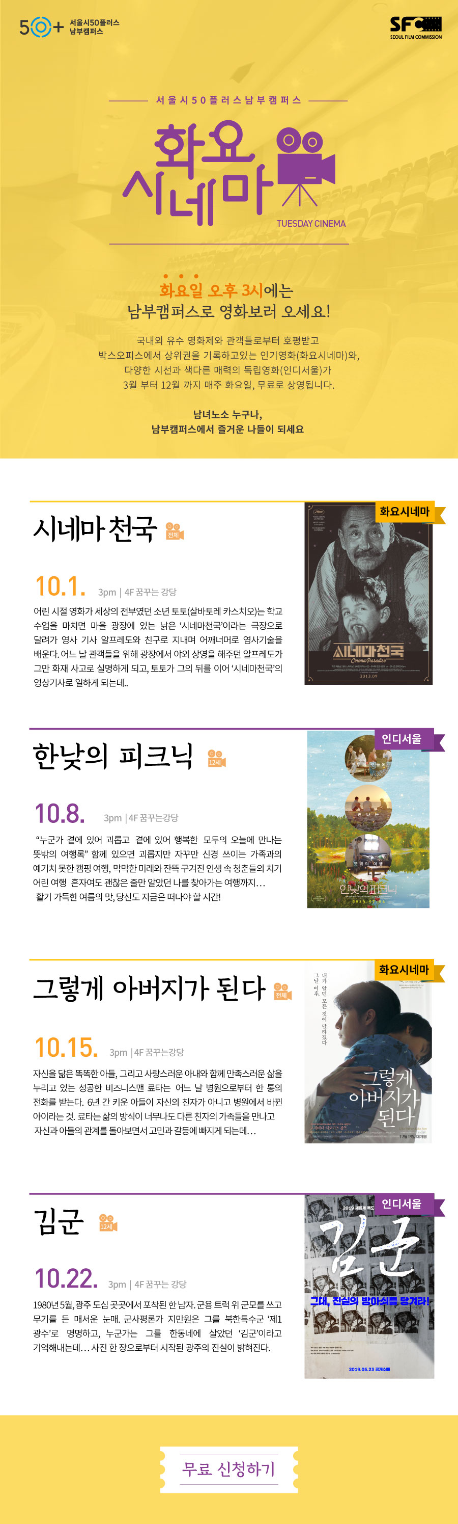 7월 무료영화 상영안내(아무르,강변호텔,수상한그녀,뷰티플마인드)