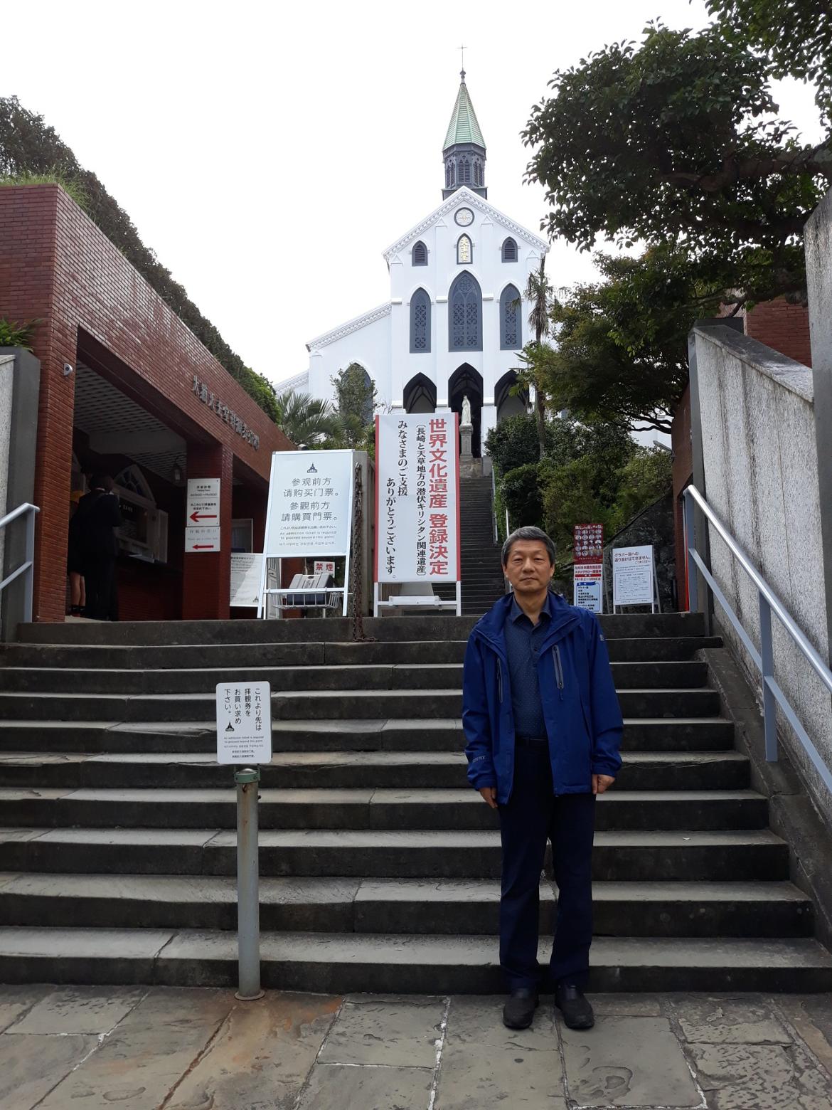 나가사키는 쇄국을 고집하던 에도시대의 유일한 개항지였다. 외래문화를 흡수하여 나가사키만의 독자적인 문화를 발전시켰다. 오우라 성당은 가장 오래된 천주교 건물로, 일본의 국보이자 2018년에 등재된 유네스코 세계문화유산이다. 유료라 들어가지 않고 앞에서 사진만 찍었다. 일본은 별로 중요해 보이지 않는 건물과 유물을 잘 보존하여 관광상품으로 쓰는 재주가 좋다는 걸 안경다리를 보며 실감했다. 가 보면 별것 없는데 관광객은 누구나 와 보는 관광명소이다. 기념으로 사진을 찍었다. 주변 공원과 거리 풍경이 깨끗하고 아기자기하다.