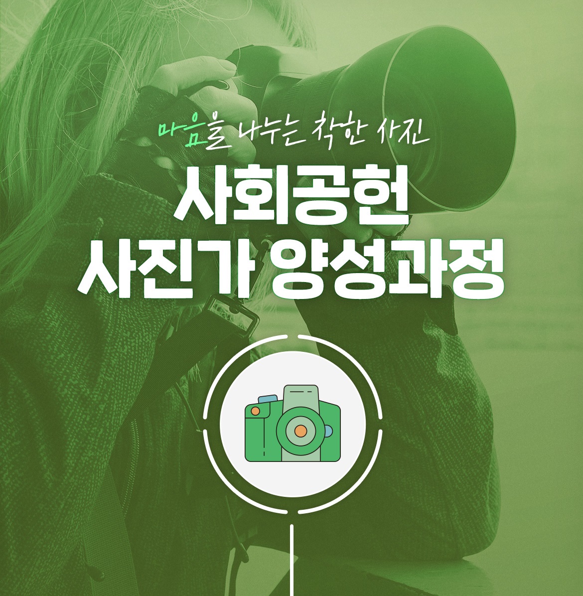 마음을 나누는 착한 사진, 상황에 따른 맞춤형 촬영법과 후보정 노하우까지 배울 수 있다. 9.1~9.30 온라인과 오프라인 실습으로 8회 차 수업이다. 디지털 프로그램을 진행하다 보면 사진촬영 기술이 요구되는 경우가 흔하다. 이 강좌는 사진가 커뮤니티를 결성하여 사회공헌 활동에 참여할 수 있고 사진촬영 능력을 키우는 기회다.