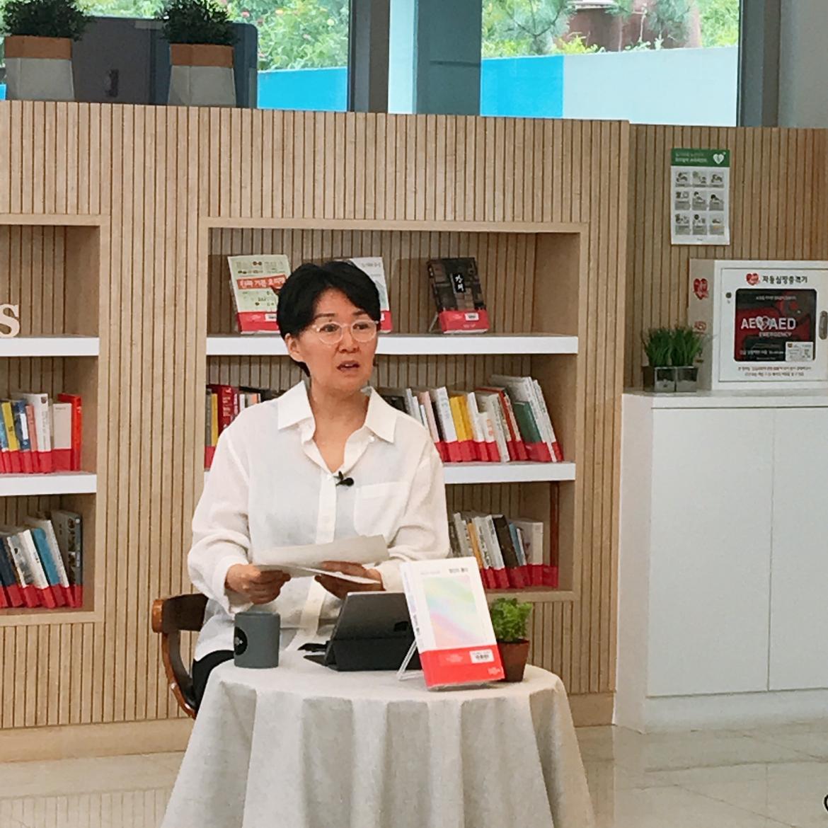 남부캠퍼스 북카페에서 정혜신박사가 코로나블루 극복 특강을 진행하고 있다.
