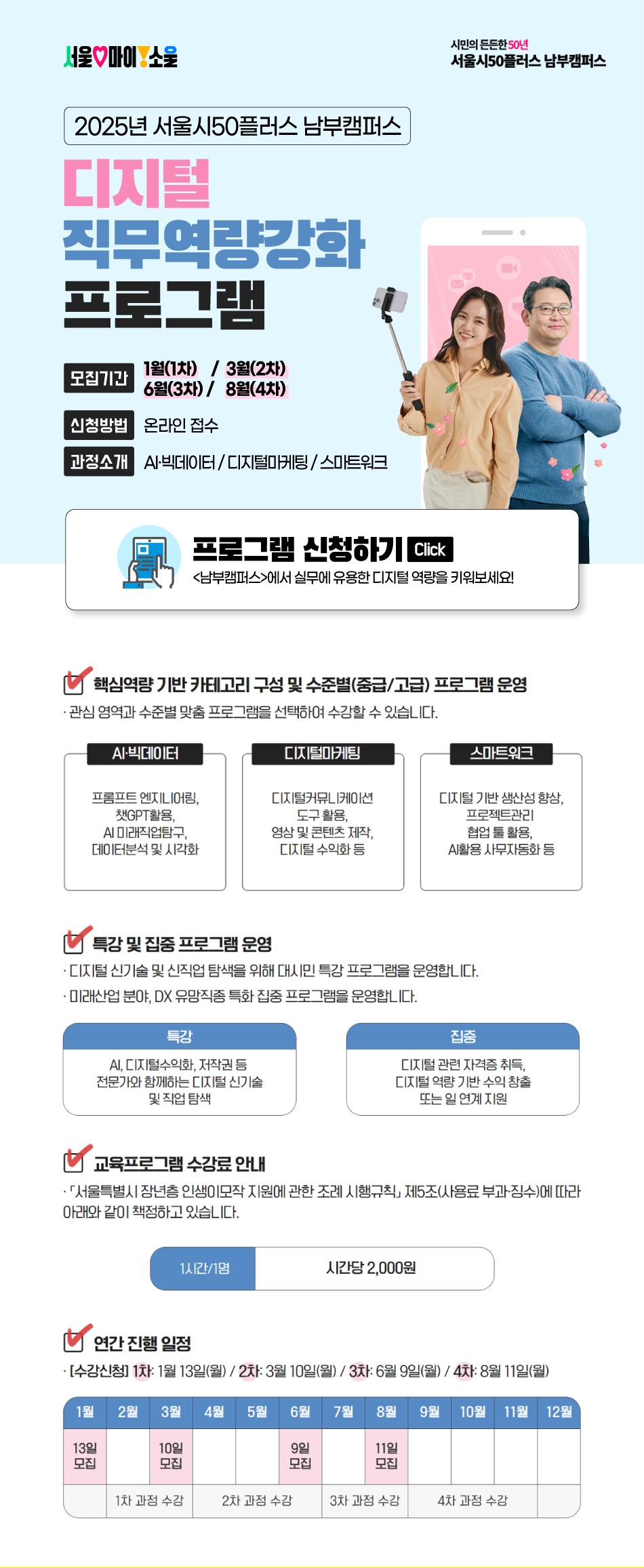 남부캠퍼스에서 실무에 유용한 디지털 역량을 키워보세요!