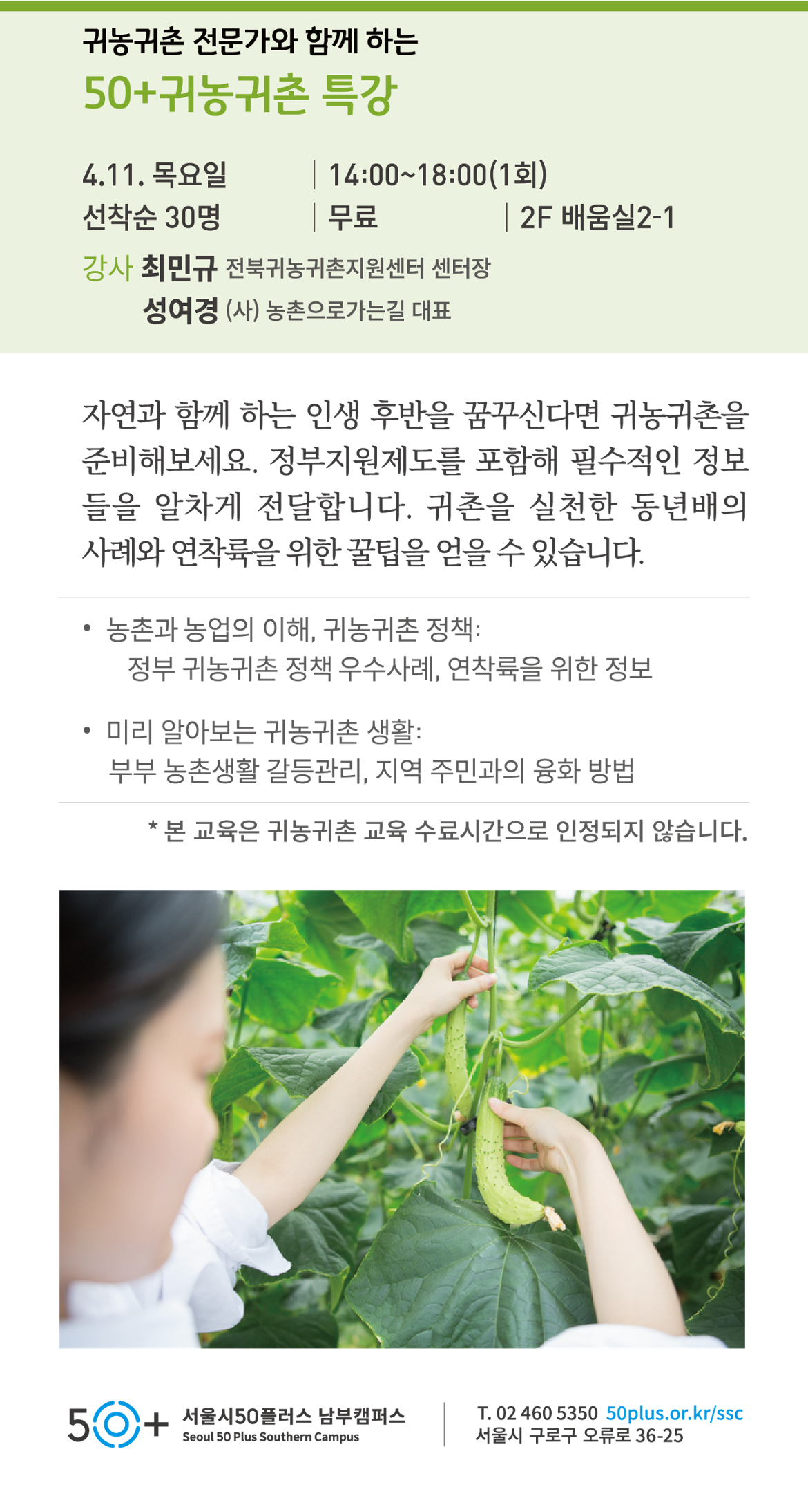 [성북]농협 무료특강 '귀농귀촌 성공 노하우’
