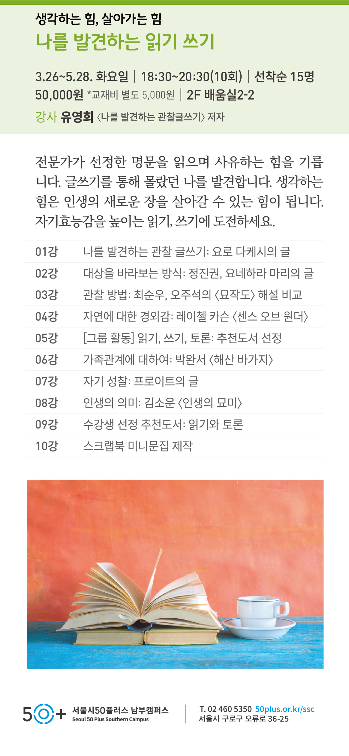 (1 회차) 2019.03.26(18:30 ~ 20:30) 배움실3-1 유영희 OT, 강의소개 <나를 발견하는 관찰글쓰기>