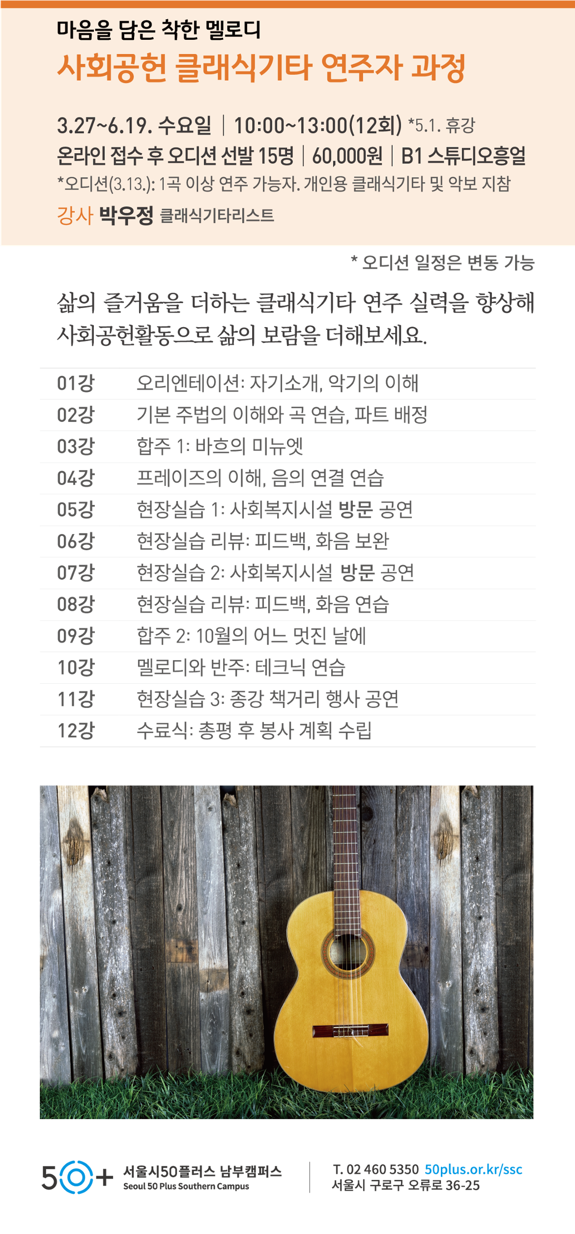 (수강신청 후 오디션 참여 가능: 1차 오디션 선발 완료,  2차 오디션 진행 후 개강 예정)