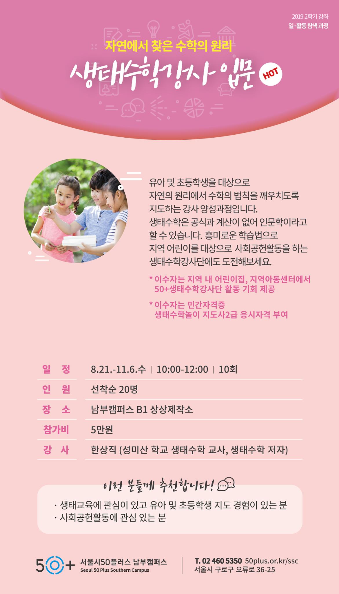 (1 회차) 2019.08.21(10:00 ~ 12:00) 상상제작소 한상직 수학과 패턴, 창의성과 생태감수성 없음