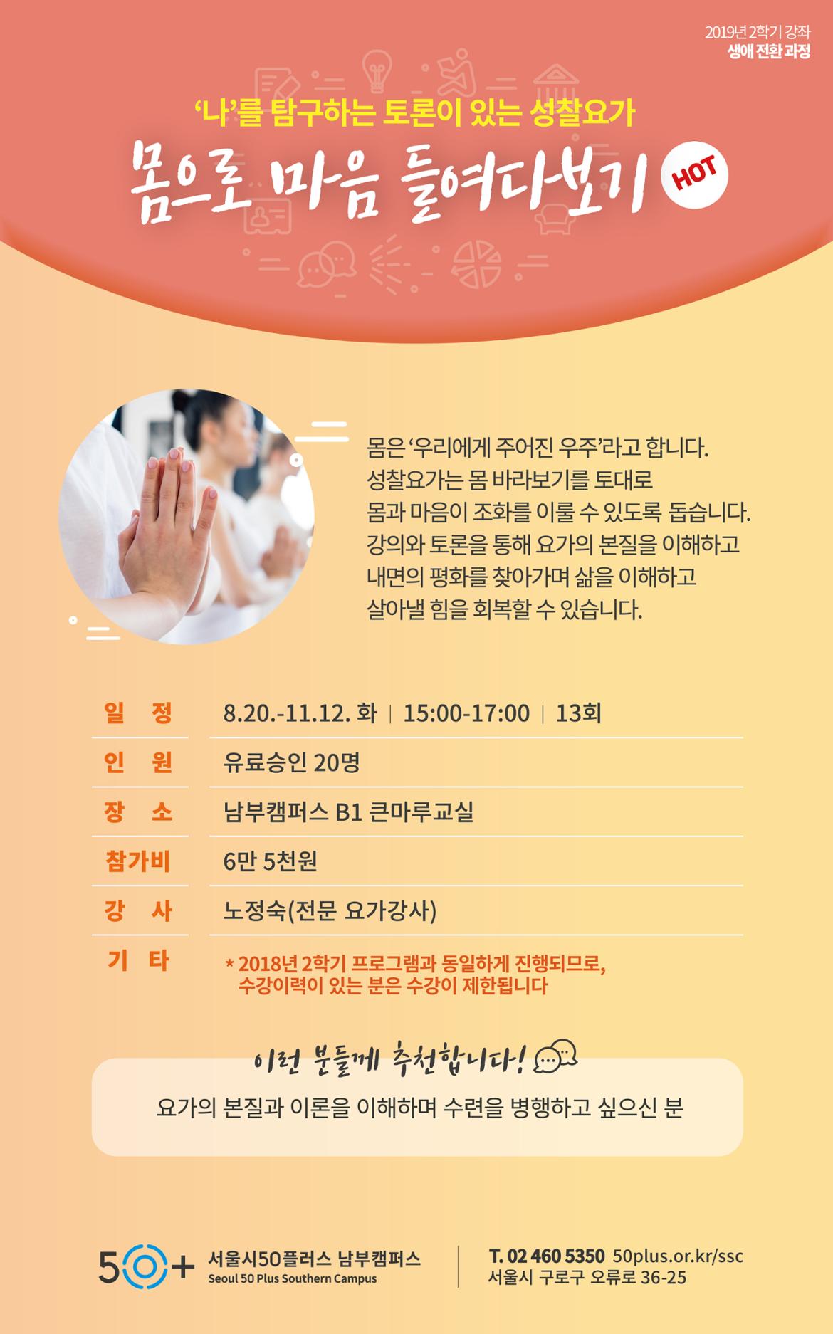(1 회차) 2019.08.20(15:00 ~ 17:00) 큰마루교실 노정숙 요가는 누구나 할 수 있다